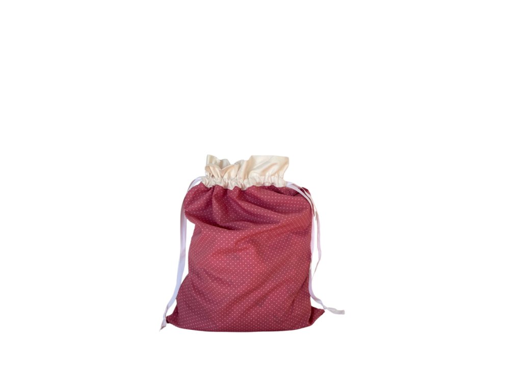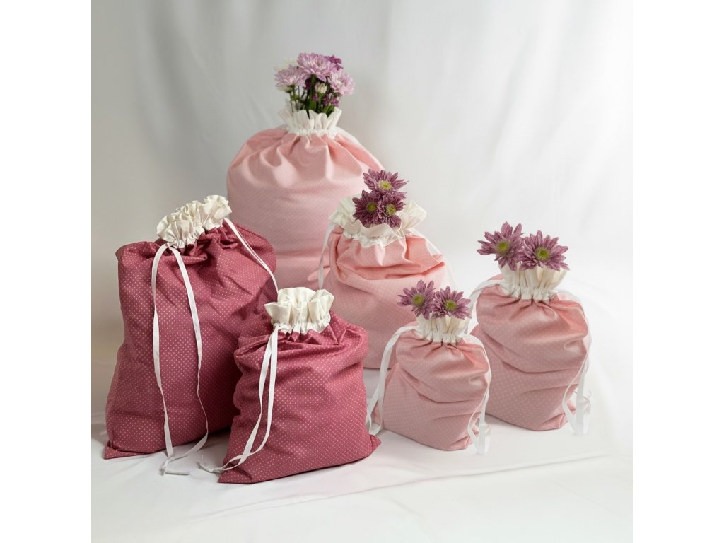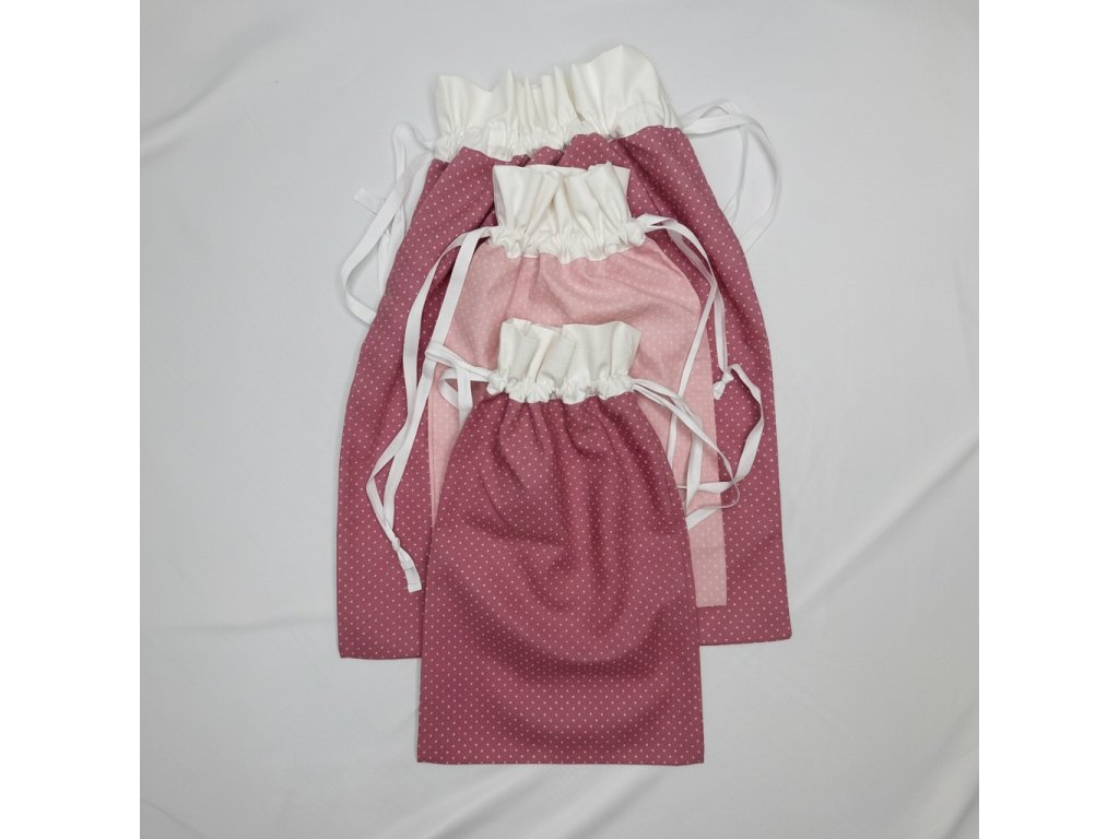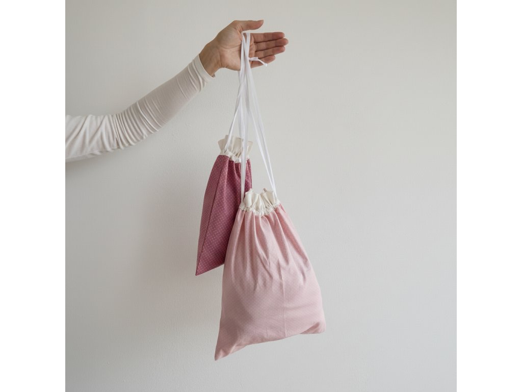 Malý tip: Díky stejnému vzoru lze krásně nakombinovat s našimi stahovacími sáčky z puntíkaté kolekce ve světle růžové barvě.