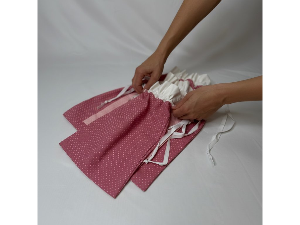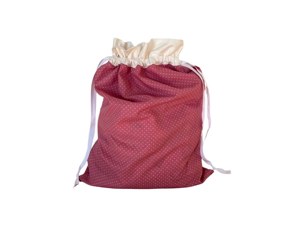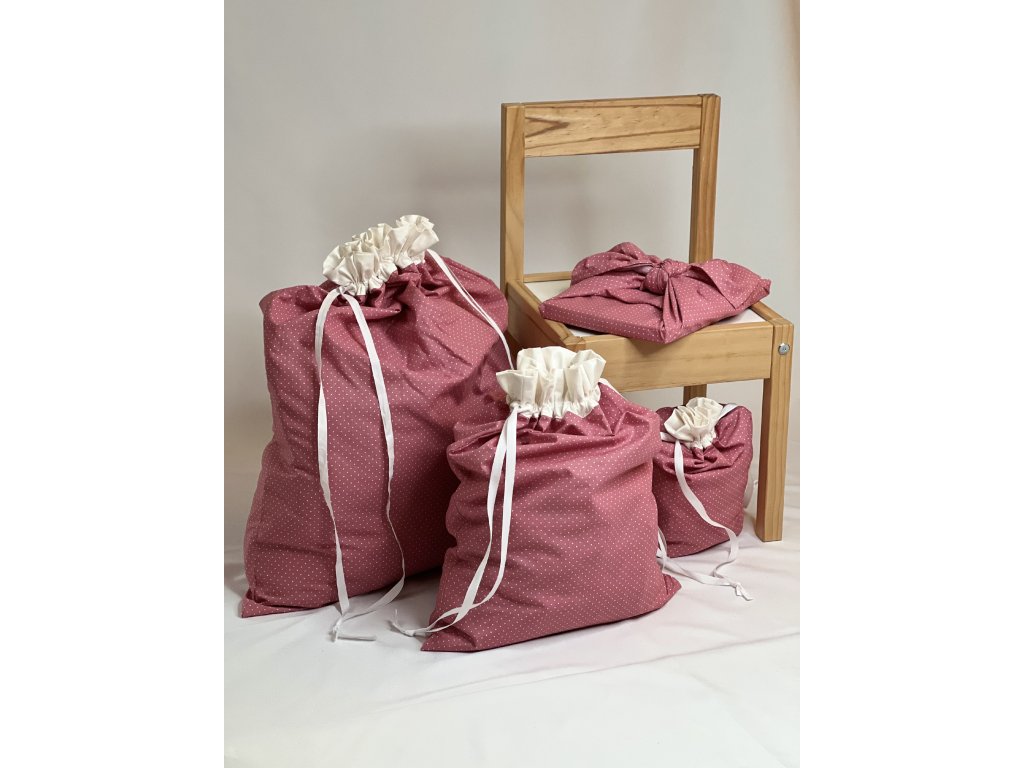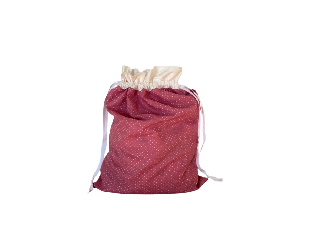 Malý tip: Díky stejnému vzoru lze krásně nakombinovat s našimi stahovacími sáčky z puntíkaté kolekce ve světle růžové barvě.